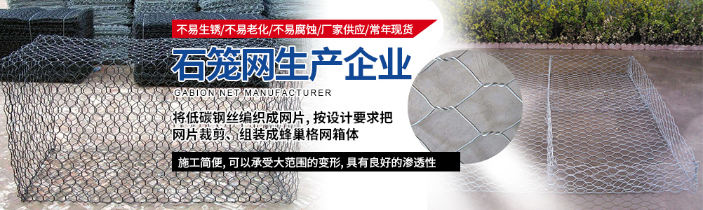 本公司主要生產:石籠網、格賓網、重型六角網、鍍高爾凡格賓擋墻、雷諾護墊、綠濱墊固濱籠、耐特籠、鉛絲石籠、格賓石籠、電焊石籠網、鍍鋅石籠網、河道石籠網、包塑石籠網、勾花網、高爾凡石籠網、三擰石籠網、五擰石籠網等,可用于保護和支持河道、海堤、山坡、路橋、水庫及其他土木工程, 是防洪固堤工程的上好材料。以可靠的質量,滿意的售后服務深受新老客戶的好評。